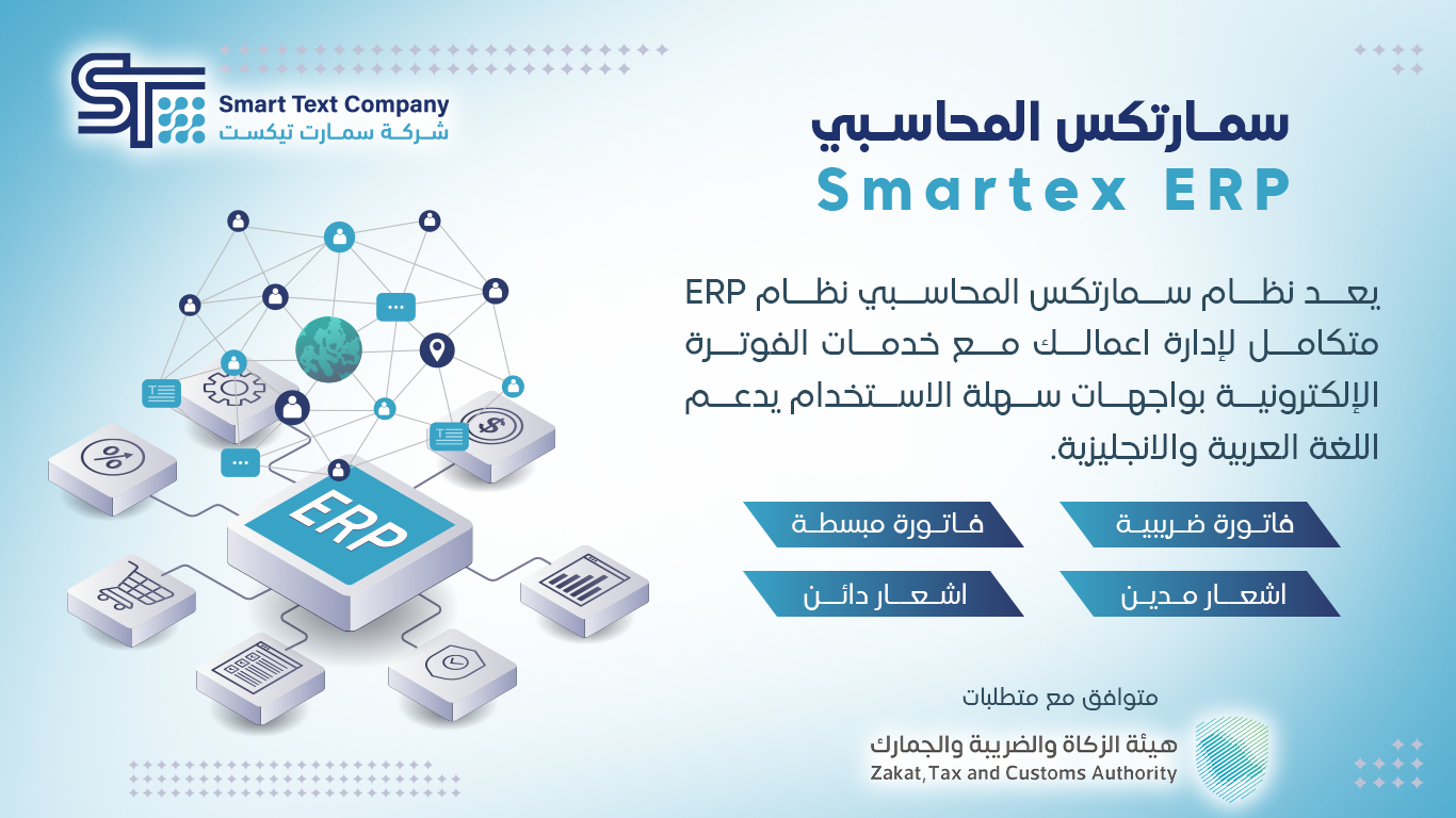 نظام SMARTEX ERP هو نظام سحابي ERP متكامل لإدارة المنشئات الصغيرة والمتوسطة والكبيرة